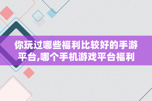 以上内容就是关于哪个手机游戏平台福利多的问题全部解答了,如果对你有所帮助的话,请收藏关注本站,这里将更新更多关于哪个手机游戏平台福利多的内容。