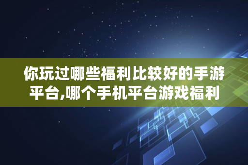 你玩过哪些福利比较好的手游平台,哪个手机平台游戏福利最好用
