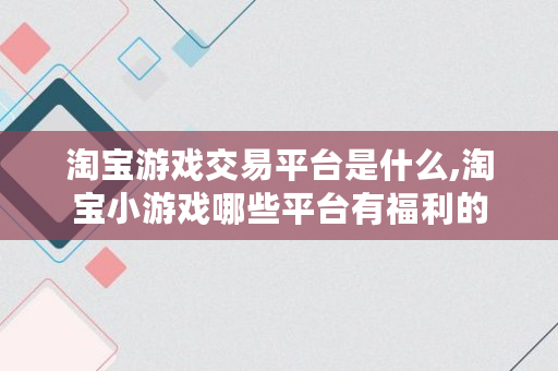 淘宝游戏交易平台是什么,淘宝小游戏哪些平台有福利的