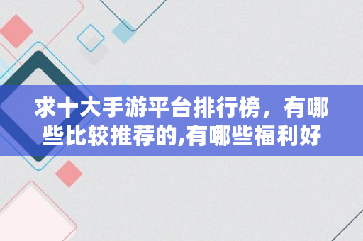 求十大手游平台排行榜,有哪些比较推荐的,有哪些福利好游戏平台可以玩