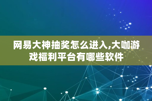 网易大神抽奖怎么进入,大咖游戏福利平台有哪些软件