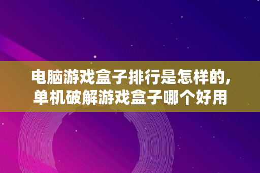电脑游戏盒子排行是怎样的,单机破解游戏盒子哪个好用