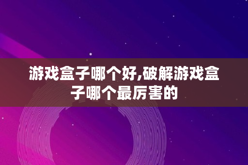 游戏盒子哪个好,破解游戏盒子哪个最厉害的