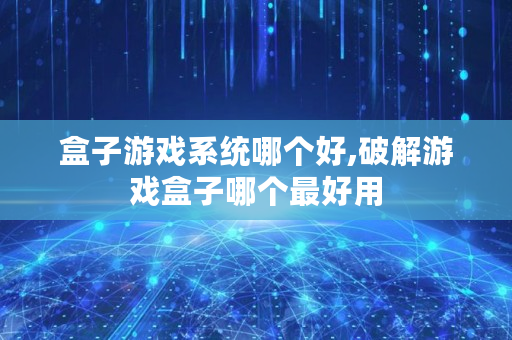 盒子游戏系统哪个好,破解游戏盒子哪个最好用