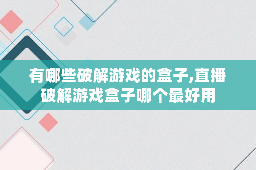 有哪些破解游戏的盒子,直播破解游戏盒子哪个最好用