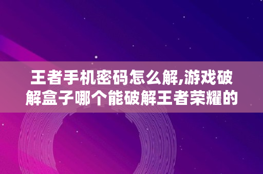 王者手机密码怎么解,游戏破解盒子哪个能破解王者荣耀的