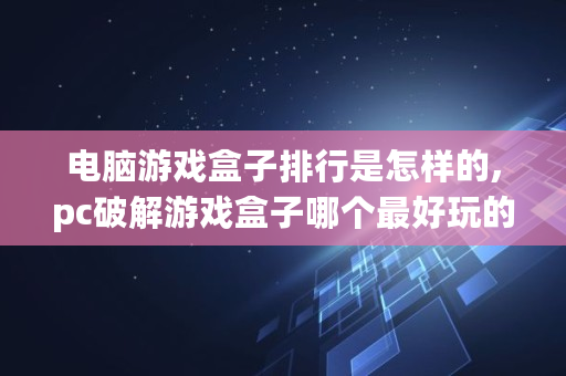 电脑游戏盒子排行是怎样的,pc破解游戏盒子哪个最好玩的