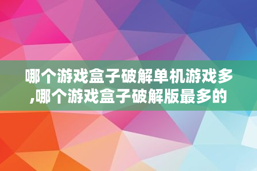 哪个游戏盒子破解单机游戏多,哪个游戏盒子破解版最多的