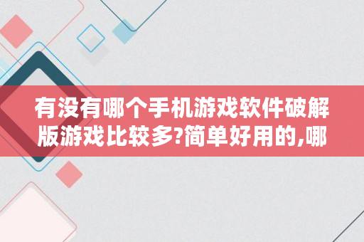 有没有哪个手机游戏软件破解版游戏比较多?简单好用的,哪个游戏盒子多破解版的