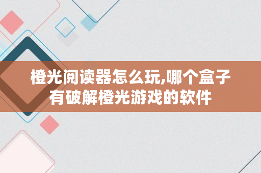 橙光阅读器怎么玩,哪个盒子有破解橙光游戏的软件