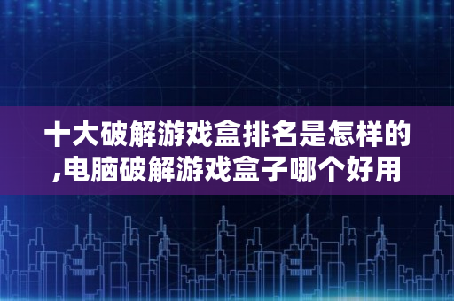 十大破解游戏盒排名是怎样的,电脑破解游戏盒子哪个好用点的