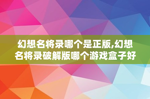 幻想名将录哪个是正版,幻想名将录破解版哪个游戏盒子好用