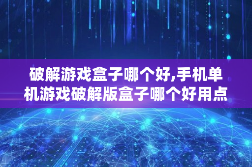 破解游戏盒子哪个好,手机单机游戏破解版盒子哪个好用点