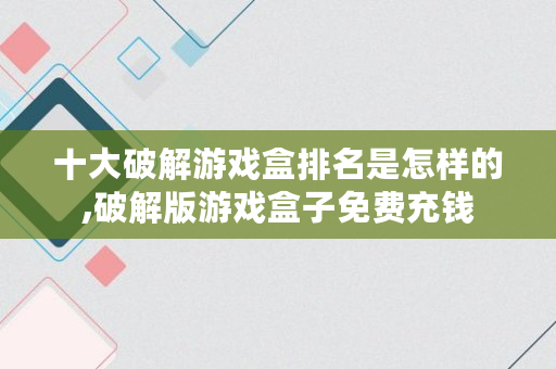 十大破解游戏盒排名是怎样的,破解版游戏盒子免费充钱
