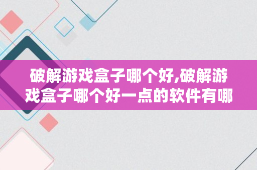 以上内容就是关于破解游戏盒子哪个好一点的软件的问题全部解答了,如果对你有所帮助的话,请收藏关注本站,这里将更新更多关于破解游戏盒子哪个好一点的软件的内容。