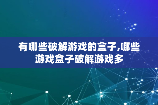 有哪些破解游戏的盒子,哪些游戏盒子破解游戏多