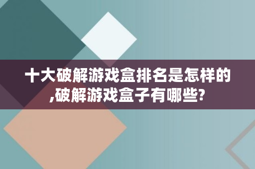 以上内容就是关于破解游戏盒子进有哪些的问题全部解答了,如果对你有所帮助的话,请收藏关注本站,这里将更新更多关于破解游戏盒子进有哪些的内容。