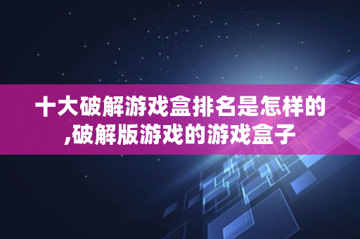 以上内容就是关于下载破解游戏盒子有哪些的问题全部解答了,如果对你有所帮助的话,请收藏关注本站,这里将更新更多关于下载破解游戏盒子有哪些的内容。