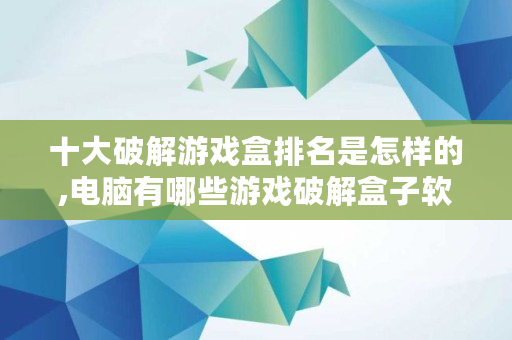 十大破解游戏盒排名是怎样的,电脑有哪些游戏破解盒子软件
