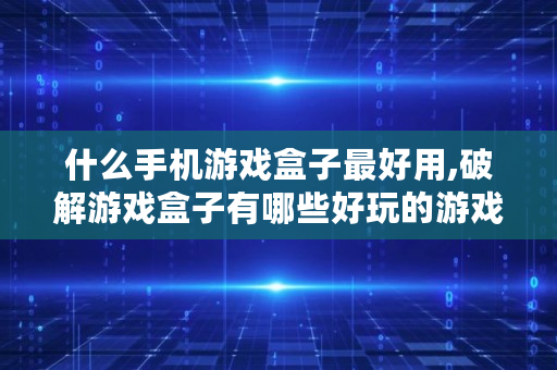 什么手机游戏盒子最好用,破解游戏盒子有哪些好玩的游戏软件