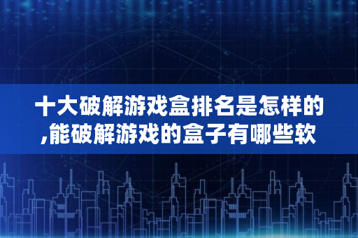 以上内容就是关于能破解游戏的盒子有哪些的问题全部解答了,如果对你有所帮助的话,请收藏关注本站,这里将更新更多关于能破解游戏的盒子有哪些的内容。