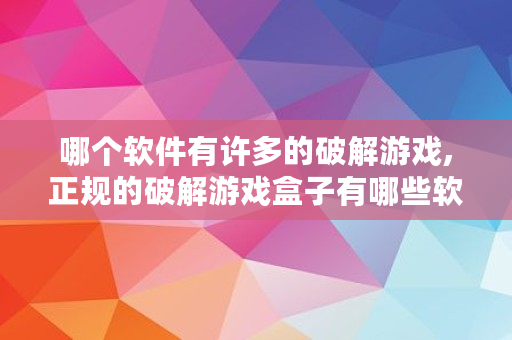 哪个软件有许多的破解游戏,正规的破解游戏盒子有哪些软件
