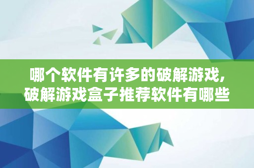 哪个软件有许多的破解游戏,破解游戏盒子推荐软件有哪些免费