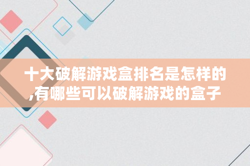 以上内容就是关于有哪些可以破解游戏的盒子的问题全部解答了,如果对你有所帮助的话,请收藏关注本站,这里将更新更多关于有哪些可以破解游戏的盒子的内容。