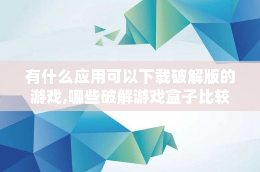 有什么应用可以下载破解版的游戏,哪些破解游戏盒子比较好玩的