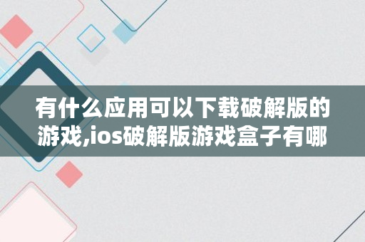 以上内容就是关于ios破解版游戏盒子有哪些的问题全部解答了,如果对你有所帮助的话,请收藏关注本站,这里将更新更多关于ios破解版游戏盒子有哪些的内容。