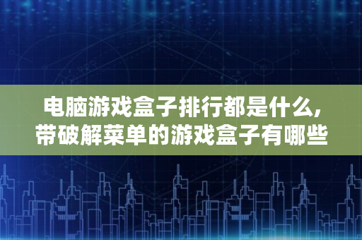 电脑游戏盒子排行都是什么,带破解菜单的游戏盒子有哪些软件