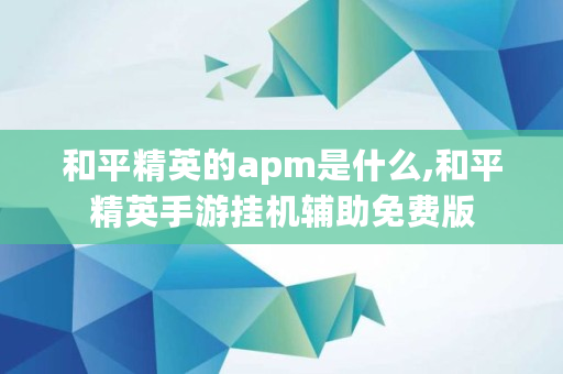 和平精英的apm是什么,和平精英手游挂机辅助免费版
