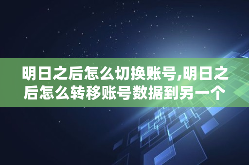 明日之后怎么切换账号,明日之后怎么转移账号数据到另一个手机
