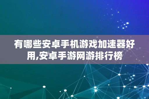有哪些安卓手机游戏加速器好用,安卓手游网游排行榜