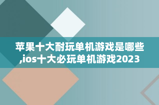 苹果十大耐玩单机游戏是哪些,ios十大必玩单机游戏2023