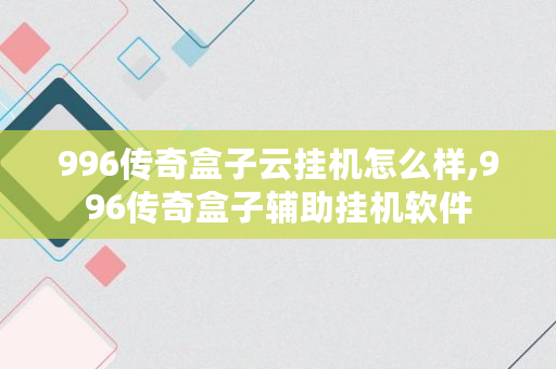 996传奇盒子云挂机怎么样,996传奇盒子辅助挂机软件