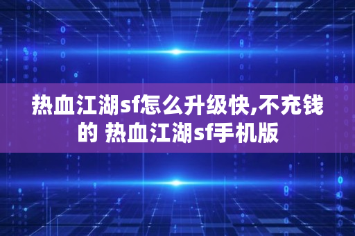 热血江湖sf怎么升级快,不充钱的 热血江湖sf手机版