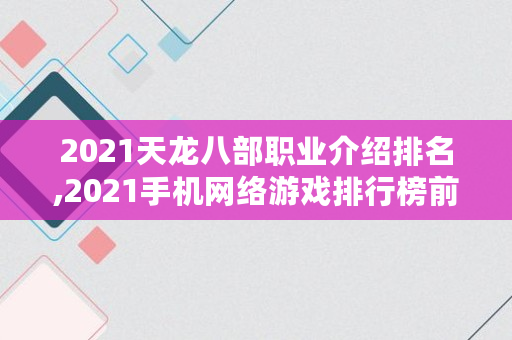 2021天龙八部职业介绍排名,2021手机网络游戏排行榜前十名