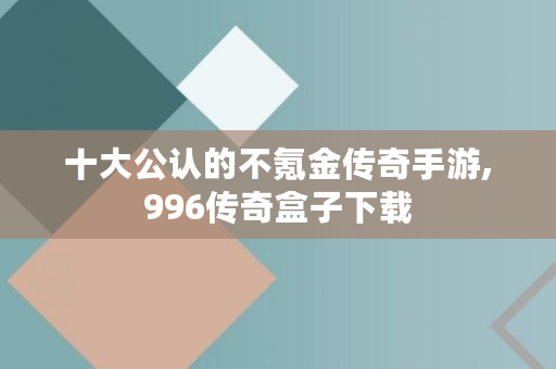 十大公认的不氪金传奇手游,996传奇盒子下载