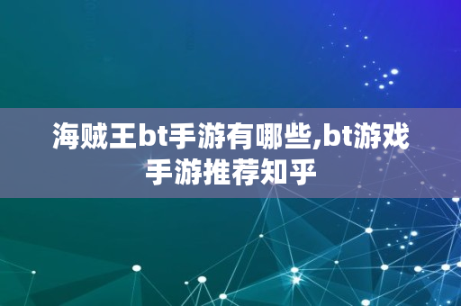 海贼王bt手游有哪些,bt游戏手游推荐知乎