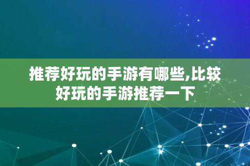 以上内容就是关于比较好玩的手游推荐的问题全部解答了,如果对你有所帮助的话,请收藏关注本站,这里将更新更多关于比较好玩的手游推荐的内容。