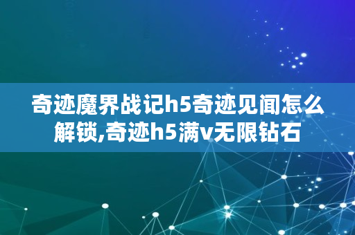 奇迹魔界战记h5奇迹见闻怎么解锁,奇迹h5满v无限钻石