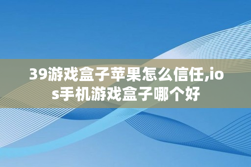 39游戏盒子苹果怎么信任,ios手机游戏盒子哪个好