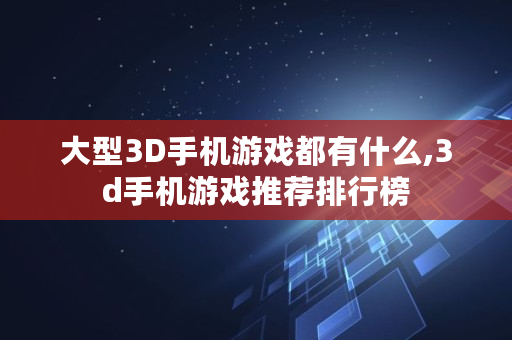 大型3D手机游戏都有什么,3d手机游戏推荐排行榜