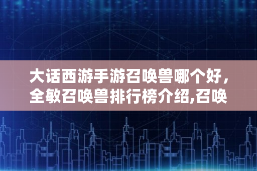 大话西游手游召唤兽哪个好,全敏召唤兽排行榜介绍,召唤类手游排行榜前十名
