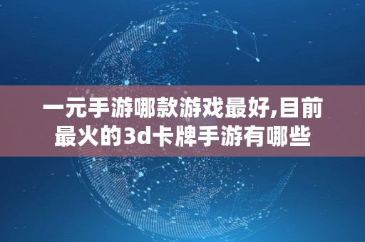 一元手游哪款游戏最好,目前最火的3d卡牌手游有哪些