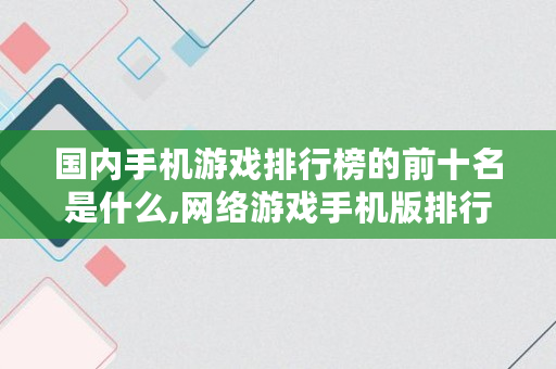 国内手机游戏排行榜的前十名是什么,网络游戏手机版排行榜最新