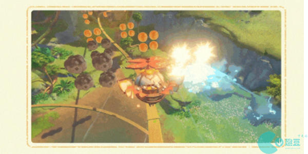 琉形蜃境中存在洞穴和高地,乘坐轨道车可以帮助旅行者在才同地形间穿梭,呼呼飞车搭载的魔法武装会释放「欢呼激流],利用其击毁蓬蓬果可完成对应挑战;
