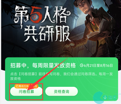 2、然后我们点击第五人格共研服,点击进去之后我们选择问卷招募;