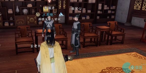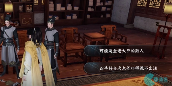 7、和陈德风交流完之后我们需要往中心走去,我们走着会发现身边有人出现(这段都是剧情大家直接跟着过就可以),这个人正是白大哥,然后我们再次进入对话剧情,结束后,我们需要来到大厅调查金老太爷的死因;